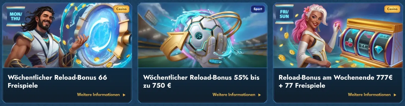 Wer regelmässig bei Casea spielt, sollte die Promotionsseite im Auge behalten, um kein attraktives Reload-Angebot zu verpassen.